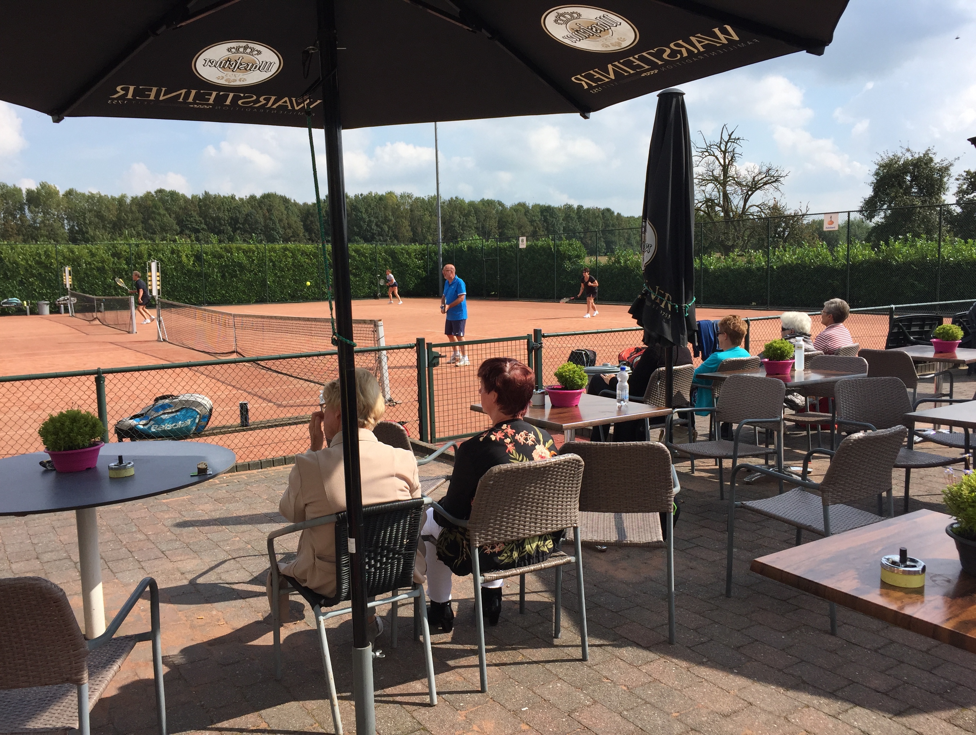 De zondag begon stralend en dat is de gehele dag zo gebleven. Door het goede weer waren er meer kijkers en kon iedereen buiten zitten, dus zag het er veel gezelliger uit. Iedereen was goedgemutst. Het kon zijn dat je al 2 wedstrijden had gespeeld, alvorens in de finale te komen. “Drie is teveel” was voor een enkeling de waarheid.